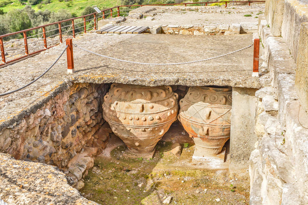 Ancient Tylisos is situated 16km west from Heraklion and it was built on a strategic location for the Minoans, on the road from Knossos to the western Minoan centers. The site demonstrates some of the most impressive Minoan architecture and the archeological findings suggest that it used to be an important coppersmith centre during the Minoan times. The importance of the site for the Minoans is underlined by the inscriptions in Linear A, a language associated with the palace, on various tablets and ceramics that were found on this site during excavations.