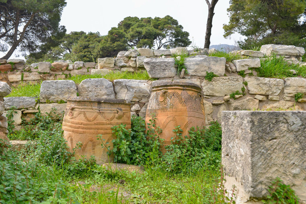The archaeological site of Agia Triada (Holy Trinity) is located just 3km away from Phaistos and parts of the road connecting the two sited during ancient times is still visible today. It is considered as one of the most important monuments of Minoan architecture and the small palace that was built around 1600 BC on this site was possibly the summer palace of the king Phaistos. Although not as large as the Knossos and Phaistos palaces, the building follow the same Minoan standards of elegance and utility.